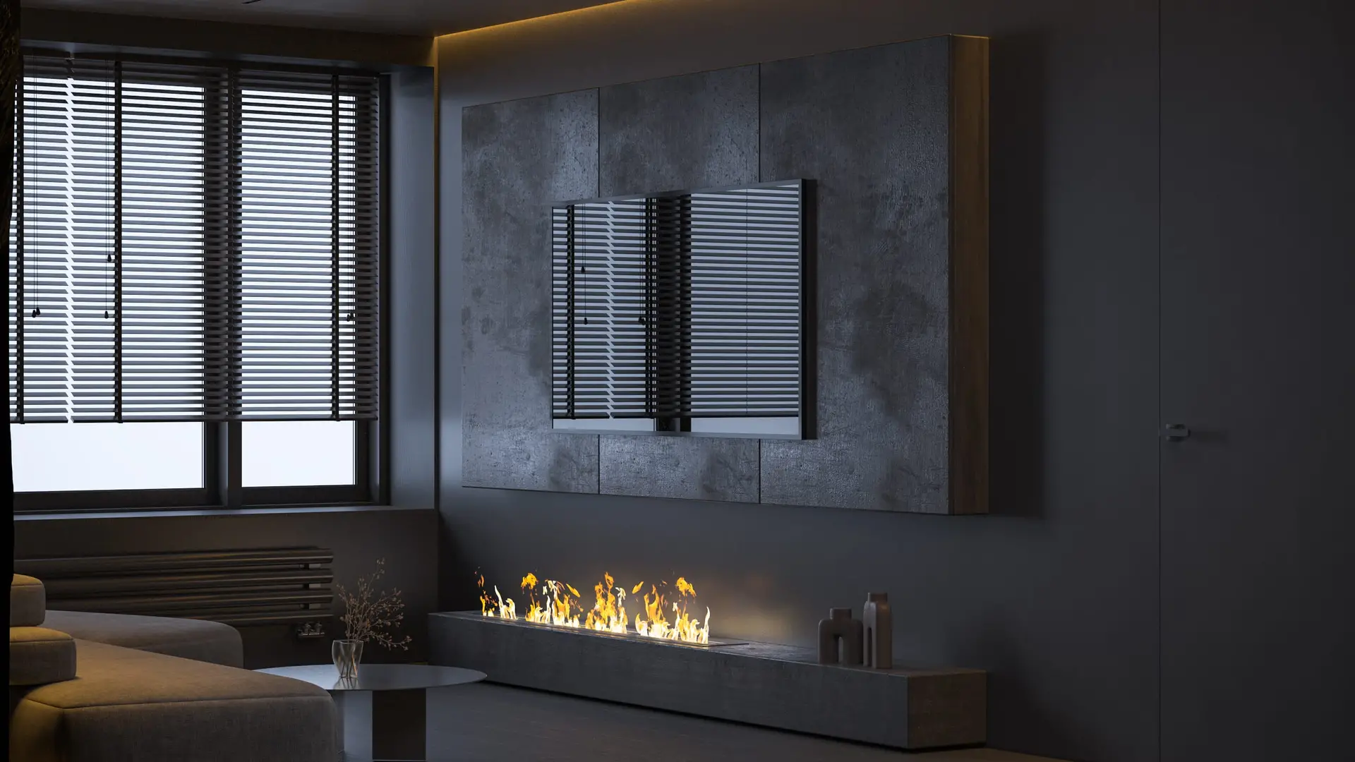 Создание функционального и стильного пространства с акцентом на суровую природную текстуру, мягко перетекающую в минималистичный интерьер.