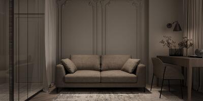 Трехкомнатная квартира для молодой пары, с совмещенной кухней-гостиной, мастер спальней с мастер санузлом, гостевым санузлом, гардеробной и кабинетом, огражденным полностью стеклянной перегородкой. Дизайн всей квартиры – это яркое и необычное смешение элементов неоклассики и поп арта.