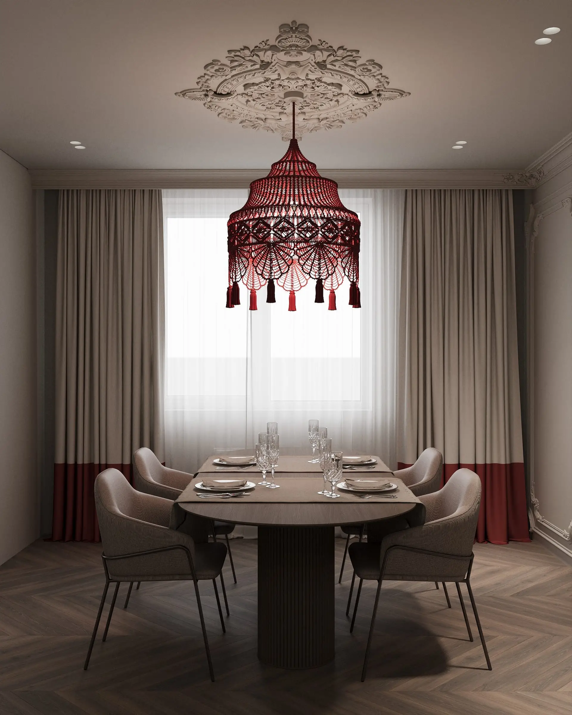 Трехкомнатная квартира для молодой пары, с совмещенной кухней-гостиной, мастер спальней с мастер санузлом, гостевым санузлом, гардеробной и кабинетом, огражденным полностью стеклянной перегородкой. Дизайн всей квартиры – это яркое и необычное смешение элементов неоклассики и поп арта.